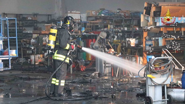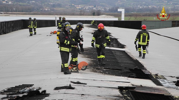 Alcuni operai stavano riparando la copertura di ondulato di lamiera che presentava un’apertura provocata dall’incursione di alcuni ladri qualche tempo fa. Le fiamme sono si sono propagate velocemente in senso longitudinale lungo tutta la copertura. I vigili del fuoco hanno messo in sicurezza la struttura e stanno ancora lavorando per impedire una ripresa dell’incendio.