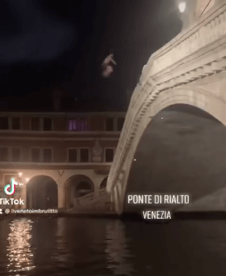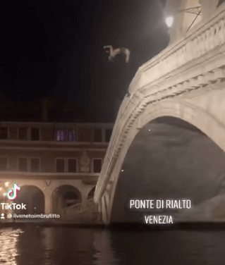 Sta facendo discutere in queste ore un video di Tik Tok rilanciato dalla pagina facebook “Veneto Imbruttito” dove è ripreso l’ennesimo sfregio alla città. Nel video, di una decina di secondi, si vede un uomo che si tuffa, all’indietro e roteando su se stesso, dal Ponte di Rialto, in notturna. Tutto intorno a lui, risate e urla di incoraggiamento. Dalle prime sommarie informazioni pare che il turista facesse parte di una comitiva di tedeschi in Laguna, e sembra anche che non sia stato l’unico a tuffarsi.