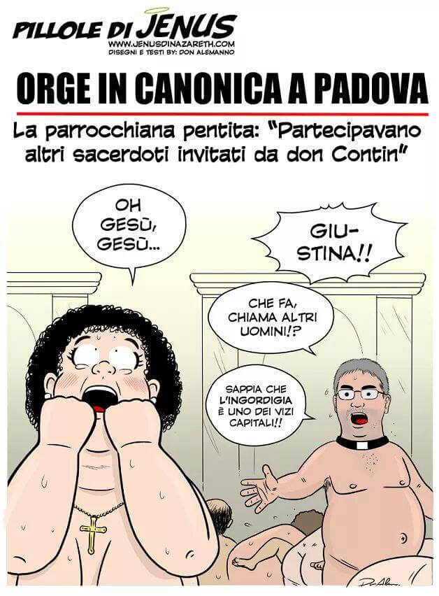 Tempo poche ore e il web si scatena sul dilagante scandalo che ha investito la Diocesi di Padova. Dopo la notizia che anche il parroco di Carbonara di Rovolon, don Roberto Cavazzana, compare nell’inchiesta (non indagato), come informato sui fatti e dopo le ammissioni dello stesso prelato sulla sua partecipazione agli incontri hot in canonica a Padova organizzati da don Andrea Contin (vedi articolo), il web si scatena. Girano vorticosamente le prime vignette self-made che fanno ironia su Uccelli di Rovo e il parroco di Rovolon. Ad aiutare la fantasia anche l’aspetto da playboy del prete. Ne pubblichiamo due… sicuri di essere in difetto rispetto alla mole di materiale prodotto. Una notizia che ha particolarmente colpito non solo i fedeli della parrocchia padovana, ma anche molti vicentini del Sud Est. Rovolon è un comune limitrofo alla provincia di Vicenza, molto noto agli abitanti del Basso Vicentino, molti dei quali per raggiungere Padova attraversano il paese.