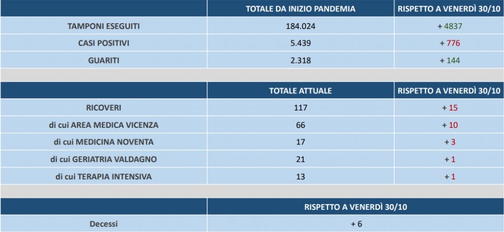 ULSS 8 BERICA – 15 ricoveri e 6 decessi da venerdì