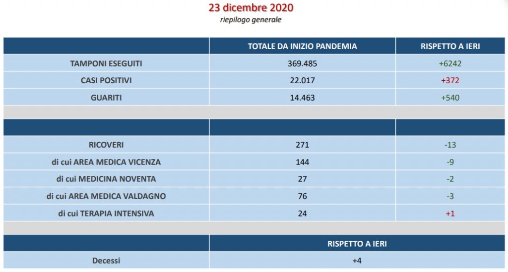 Ecco i dati dell’Ulss 8 Berica, più aggiornati rispetto a quelli emessi dalla Regione e raffrontati con la situazione di ieri