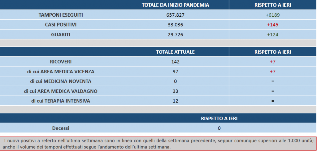 Pubblichiamo i dati del bollettino odierno dell’Ulss 8 Berica (che ricordiamo comprende Ovest, Est, Basso Vicentino e capoluogo). Nelle tabelle sotto: il bollettino e la conta dei vaccinati.