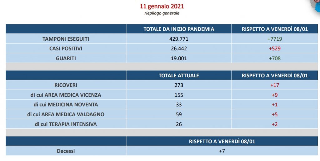 Qui sotto il bollettino odierno dell’Ulss 8 Berica. Da notare il numero elevato di guariti che supera quello dei contagiati, comunque alto. Sette sono i decessi registrati da venerdì mentre i ricoveri aumentano in tutte le strutture ospedaliere.