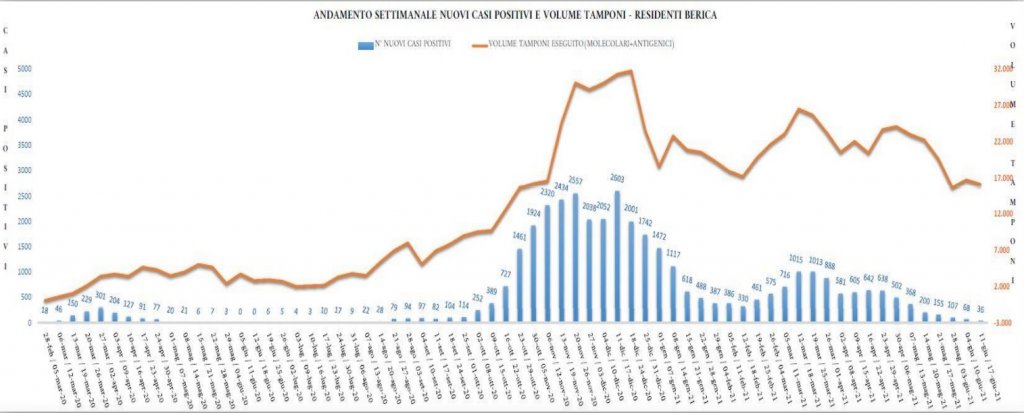 Il numero di nuovi casi scende ai livelli di metà agosto 2020. Nella settimana dal 14 al 20 agosto furono 28 mentre nella settimana dal 21 al 27 furono 79.