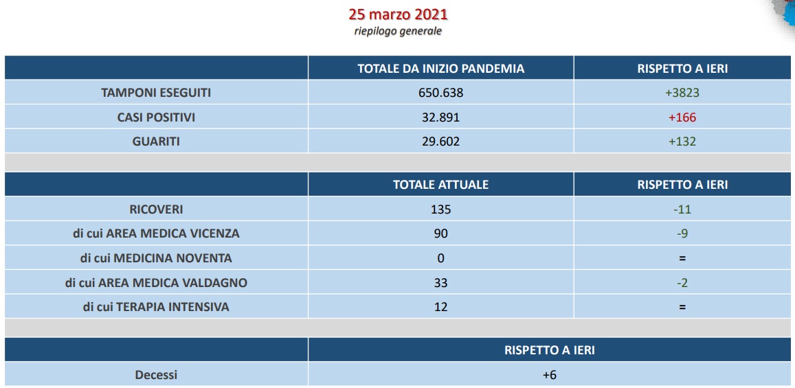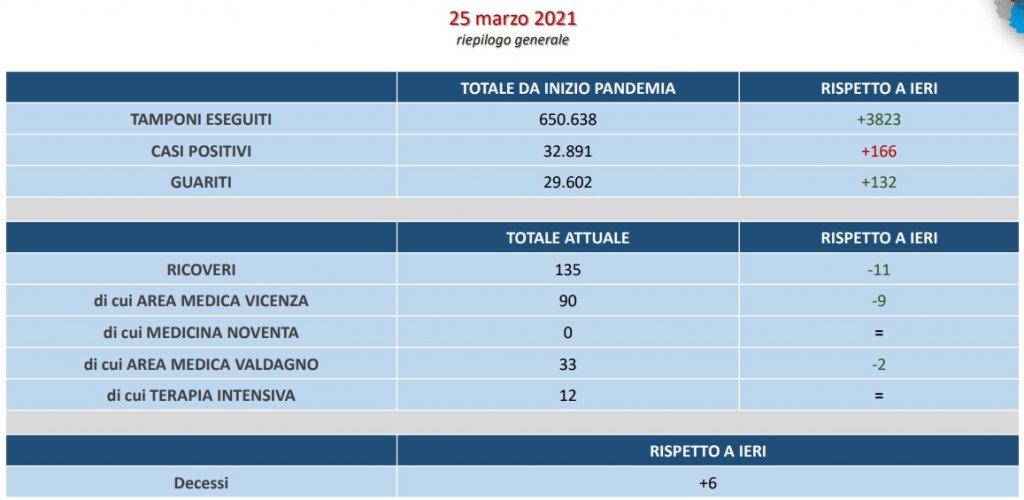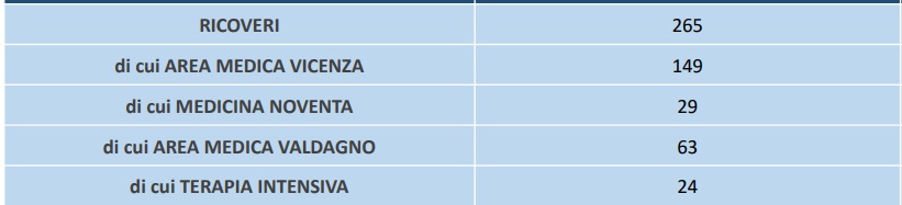 Negli ultimi giorni arrivano dati contrastanti non solo dal Veneto ma dall’Ulss 8 Berica (che comprende Ovest, Est, Basso Vicentino e Vicenza). Dopo un netto aumento dei ricoveri nei giorni scorsi, oggi arriva un dato che fa ben sperare. I ricoveri sono scesi di 11 unità (quasi del 10%). Rimangono stabili i ricoveri in terapia intensiva (12).