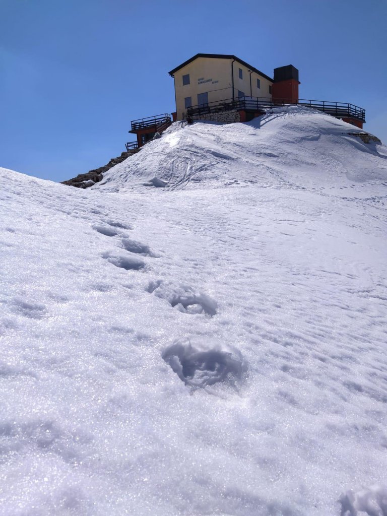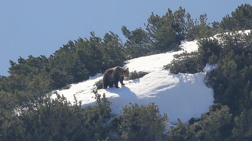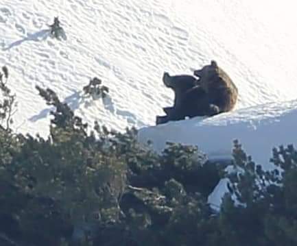 L’orso fuggiasco M49 ha sconfinato in Veneto. Ieri pomeriggio se ne stava crogiolato al sole sulla neve sul fianco del Monte Plische a 400 metri in linea d’aria dal rifugio Scalorbi. Se ne è poi andato al rifugio Fraccaroli, dove ha sfondato la porta d’ingresso del bivacco invernale dove è entrato e ha poi divelto parte del rivestimento in legno.