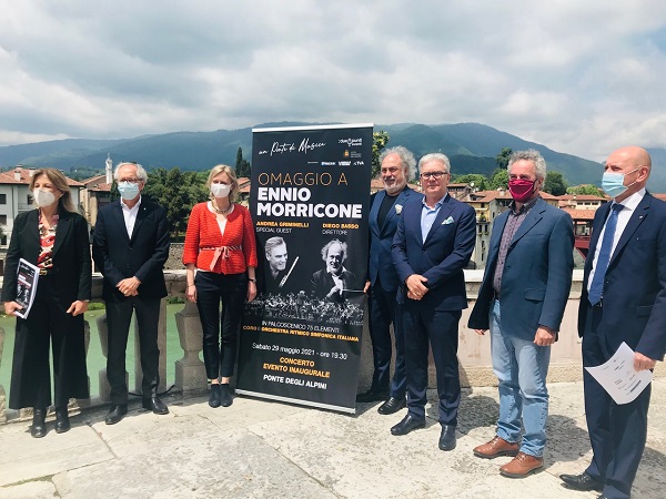 Sarà la musica di uno dei compositori più importanti al mondo, da sempre simbolo di unione e di universalità, ad inaugurare gli eventi in onore del Ponte di Bassano restituito alla Città. Sabato 29 maggio, alle ore 19.00, l’architettura palladiana, adagiata sulle acque del fiume Brenta e incorniciata dal Monte Grappa, farà da palcoscenico al concerto “Un ponte di musica – Omaggio a Ennio Morricone”, interpretato dal celebre flautista Andrea Griminelli e dall’Orchestra Ritmico Sinfonica Italiana e il Coro lirico Opera House diretti dal Maestro Diego Basso.