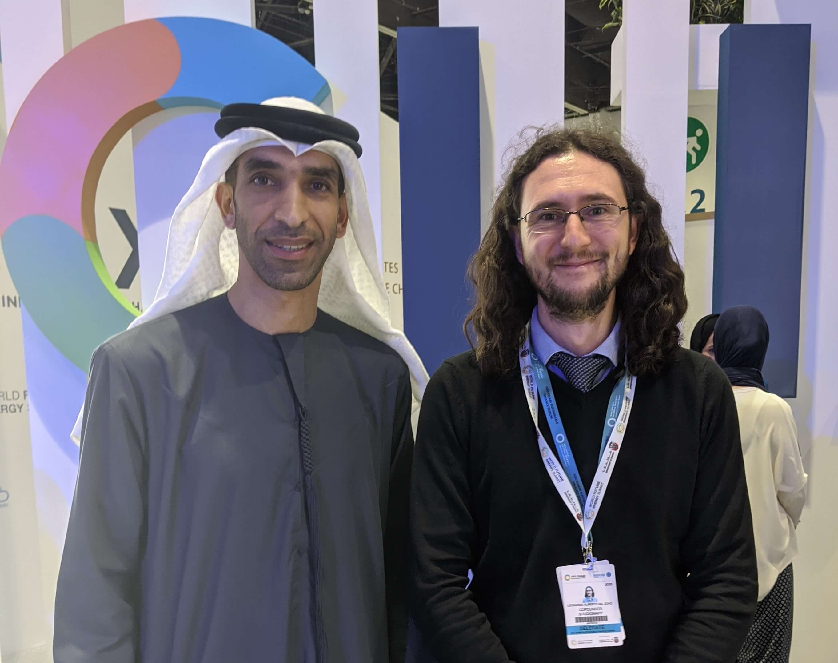 Nella foto: Leonardo Alberto Dal Zovo cofondatore di Studiomapp con Sua Eccellenza Dott Thani-bin-Ahmed-Al-Zeyoudi Ministro dei Cambiamenti Climatici e dell’ambiente degli Emirati Arabi Uniti