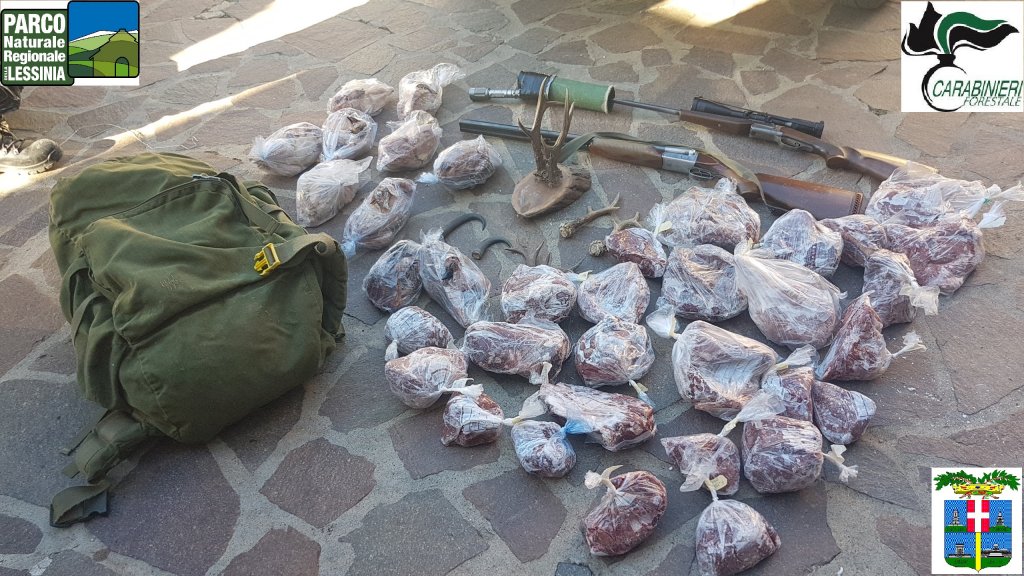 Durante la perquisizione sono stati ritrovati, infatti, l’arma, il cane e l’attrezzatura utilizzata durante l’attività di bracconaggio. Sono stati inoltre scoperti una carabina modificata con l’installazione di un silenziatore artigianale e una gran quantità di spoglie di fauna selvatica priva della necessaria attestazione di legittima provenienza riposta in congelatori e pronta al consumo, tra i quali due esemplari di fagiano di monte (Lyrurus tetrix), carne di capriolo in tranci appartenente ad almeno due esemplari, quattro lepri e vari trofei di camoscio alpino e capriolo.