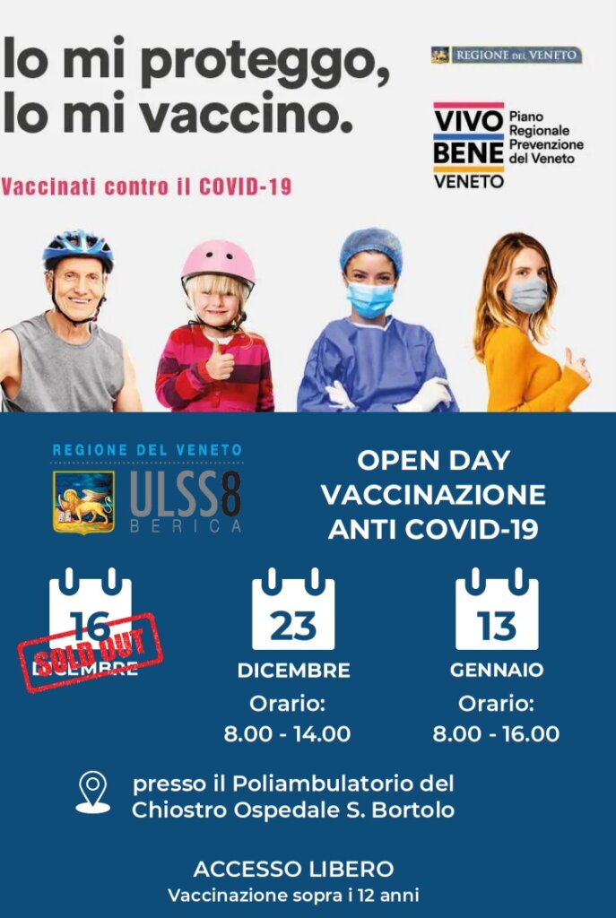 L’Ulss 8 Berica accelera la campagna di vaccinazione anti-Covid, di pari passo con una crescente attenzione da parte dei cittadini: per l’open day in programma il 16 dicembre i posti disponibili risultano già esauriti, ma al fine di soddisfare tutte le richieste l’Azienda socio-sanitaria ha già programmato altre due giornate di apertura straordinaria, sabato 23 dicembre con orario continuato dalle 8.00 alle 14.00 e sabato 13 gennaio dalle 8.00 alle 16.00. In entrambe le date le vaccinazioni saranno eseguite presso il Poliambulatorio del Chiostro dell’ospedale San Bortolo con accesso libero. Per chi lo desidera è tuttavia possibile prenotare la vaccinazione in una determinata fascia oraria al link: https://vaccinicovid.regione.veneto.it/ulss8
