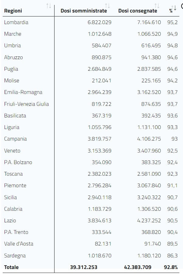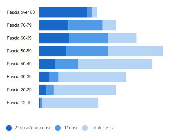 Le persone vaccinate con almeno una dose sono 25.973.362 (corrispondenti al 43,55 % della popolazione).