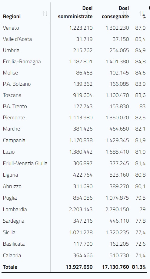 VACCINI – 1 italiano su 6 ha ricevuto almeno una dose – Ieri arrivate nuove scorte