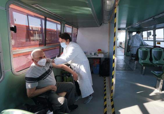 Un vaporetto attrezzato come ambulatorio e così, l’isola di Sant’Erasmo a Venezia, ha visto vaccinati anti-Covid i suoi anziani over 80. Il vaporetto – livrea inusuale rossa – ha attraccato nel pontone in genere usato per caricare e scaricare i passeggeri e mentre a terra con calma e in ordine si presentavano i candidati, a bordo si è proceduto a vaccinare gli aventi diritto dell’isola, uno degli ‘orti’ di Venezia che ospita circa 500 abitanti.