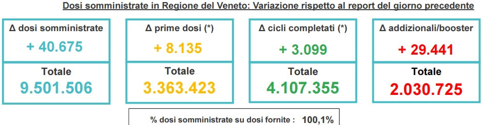 Prosegue a pieno ritmo la campagna vaccinale in Veneto. Ieri sono state somministrate 8135 prime dosi, a persone che non avevano deciso quindi di vaccinarsi in tutti questi mesi e che, aspettando che la pandemia passasse, si trovano ora a fronteggiare limitazioni e forti rischi per la salute. A pieno ritmo anche la campagna per la terza dose. In base ai dati per fasce d’età, i 40enni sono stati superati da tutte le altre fasce d’età, compresi i ragazzini dai 12 ai 19 anni (dati che sommano vaccinazione 1a dose, 2a dose e prenotazioni)