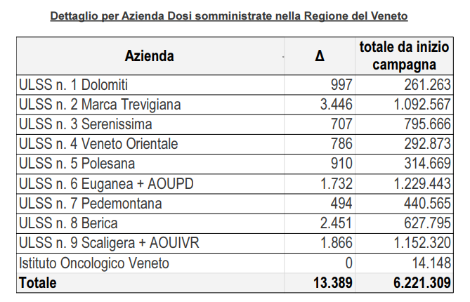 La Regione Veneto ha pubblicato il report delle vaccinazioni nella regione. In settimana, il numero di inoculazioni è tornato a salire, con 25 mila somministrazioni in più rispetto ai sette giorni precedenti.