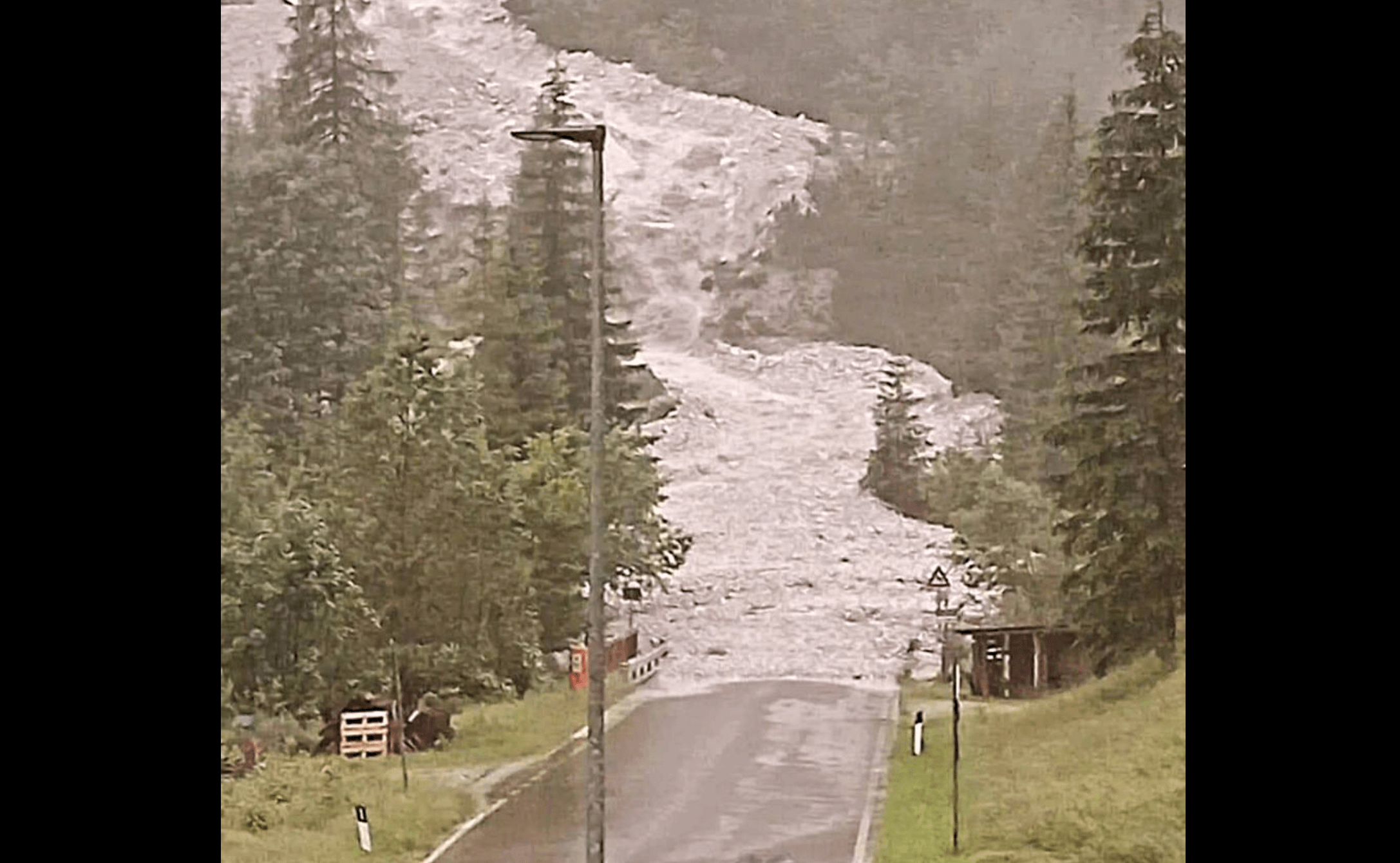 Una enorme frana di fango e detriti, causata dal forte maltempo della zona, ha invaso nel primo pomeriggio la strada provinciale 347 del passo Duran, nel comune di Val di Zoldo (Belluno).