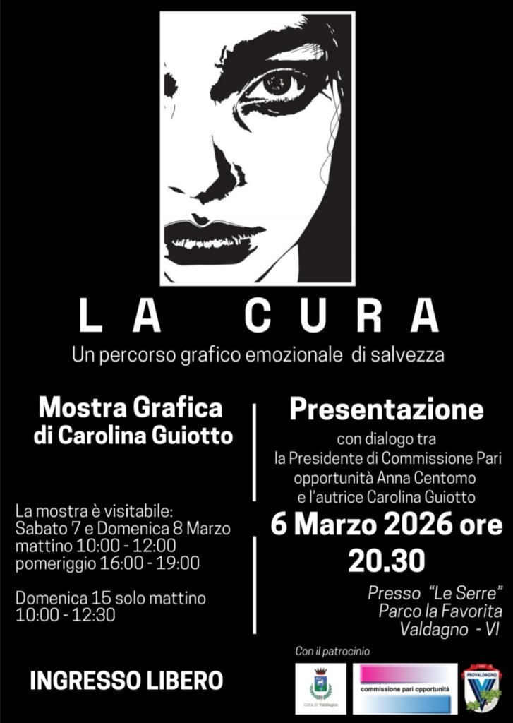 Ad aprire il programma è la mostra grafica “La Cura” di Carolina Guiotto nelle Serre del Parco La Favorita. L’esposizione, che propone un viaggio visivo, tra resilienza, delicatezza e forza femminile, sarà inaugurata venerdì 6 marzo alle 20.30 con una serata di presentazione che vedrà l’autrice dialogare con la presidente della Commissione Pari Opportunità Anna Centomo. La mostra esplora il mondo delle emozioni e degli stati d’animo, trattato con forza gentile: attraverso ritratti di donne, la mostra è un viaggio che accomuna tutti, nei delicati passaggi dagli stati d’animo più difficili, a quelli di trasformazione, fino alla rinascita. Le opere parlano del coraggio di rifiorire, prendendosi cura di sé. Il linguaggio visivo, potente e diretto, crea uno spazio di riflessione all’interno di un allestimento, le Serre appunto, che rafforza il rimando a un luogo di crescita e protezione. La mostra, organizzata da Provaldagno, è visitabile sabato 7 e domenica 8 marzo dalle 10 alle 12 e dalle 16 alle 19; domenica 15 marzo dalle 10 alle 12.30.
