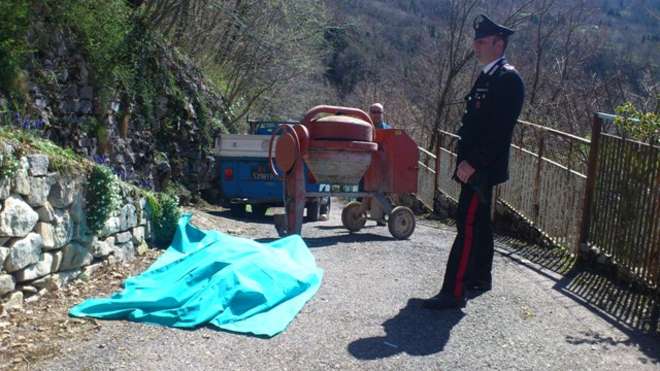 I due stavano facendo scendere una betoniera elettrica giù da una stradina ripida, con l’intento di caricarla poi sul furgoncino a disposizione.