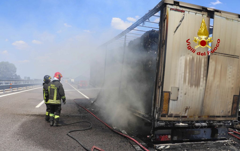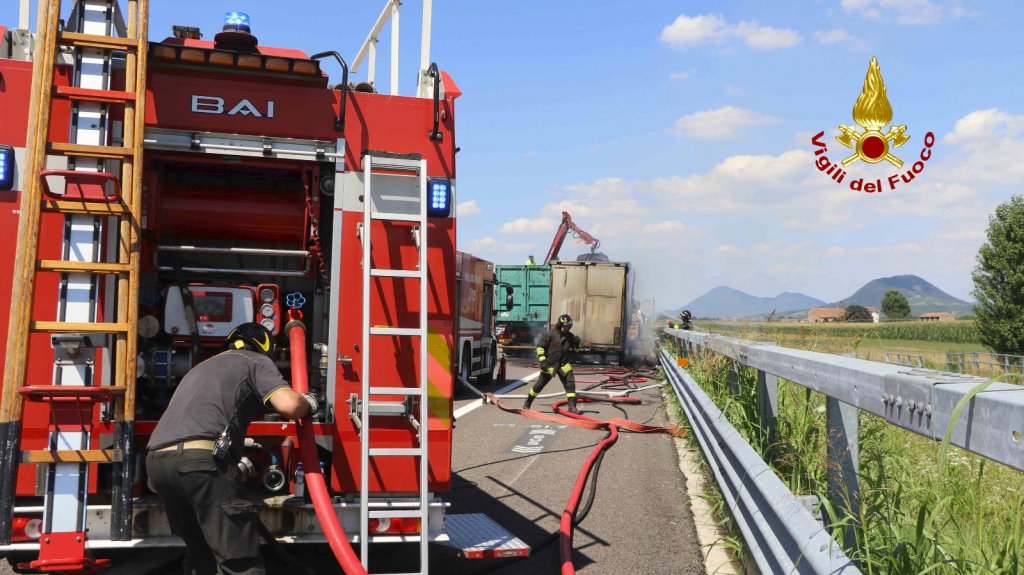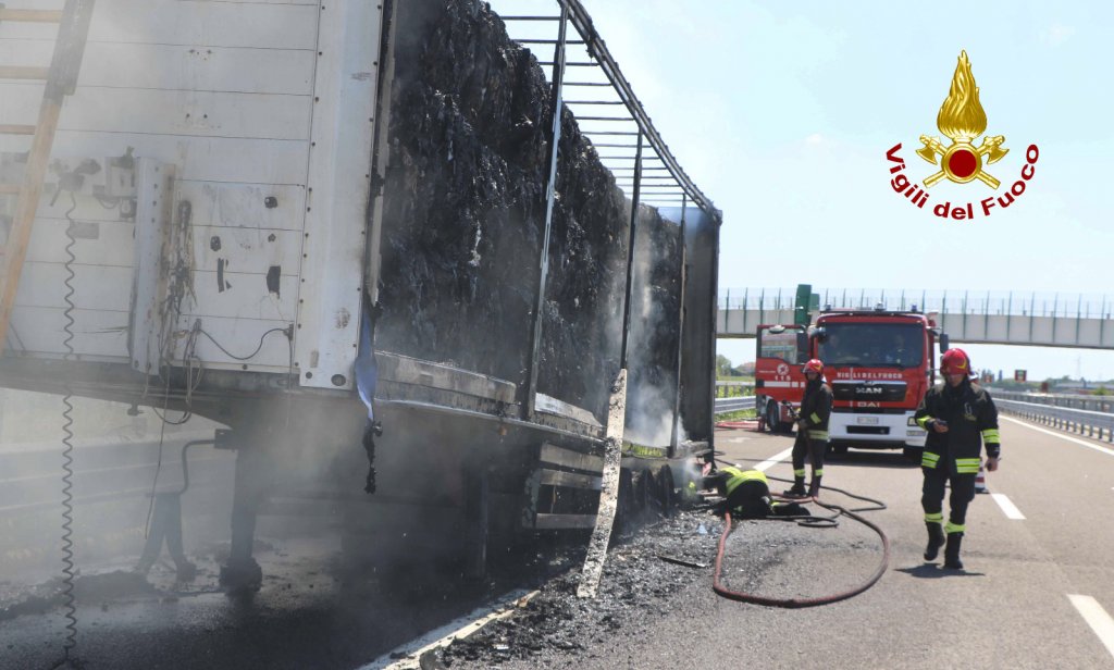 Alle 13:30, i vigili del fuoco sono intervenuti in autostrada A31 Valdastico tra i caselli di Santa Margherita d’Adige (PD) e Noventa Vicentina (VI) in direzione Nord per l’incendio del rimorchio di un autoarticolato, che trasportava carta imballata da macero. L’autista accortosi del fumo dallo specchietto retrovisore e dalle segnalazioni delle altre persone in transito è riuscito a fermarsi e staccare in tempo la motrice. Le squadre dei vigili del fuoco arrivate da Este, Lonigo, Rovigo hanno spento le fiamme, che hanno coinvolto l’intero carico e della sterpaglia ai margini dell’autostrada. Il traffico autostradale è stato canalizzato su una corsia. Le cause dell’incendio, al vaglio dei vigili del fuoco, potrebbero state innescate da un problema meccanico ad una ruota del semirimorchio. Sono ora in corso le operazioni di bonifica con la rimozione dei blocchi di cartoni, che vengono bagnati per poi essere caricati su un cassone ed essere smaltiti. Sul posto la polstrada e il personale ausiliario dell’autostrada.