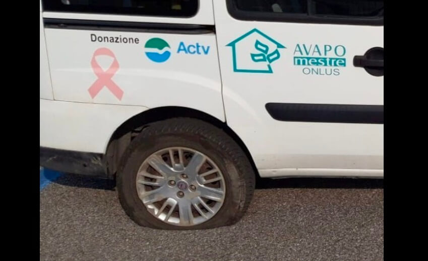Atti vandalici nella notte hanno messo fuori uso sei dei dieci furgoni dell’Avapo Mestre, l’associazione che ogni giorno assiste a domicilio i malati oncologici e li accompagna alle sedute terapeutiche. I mezzi, parcheggiati in via Santa Maria dei Battuti, sono stati ritrovati con gli pneumatici tagliati deliberatamente con delle viti. Una situazione già accaduta nei giorni scorsi, inizialmente scambiata per semplici forature, ma che ora si è rivelata essere un’azione dolosa.