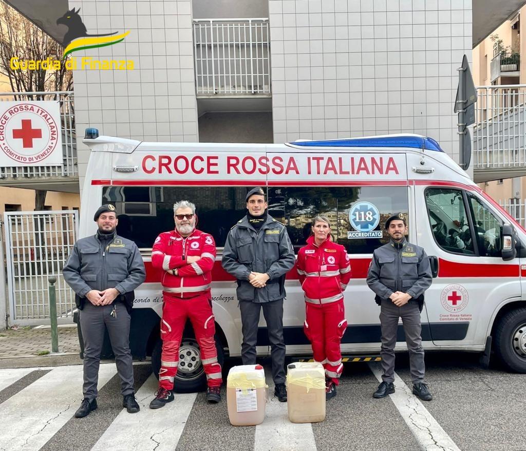 La scorsa settimana, a seguito dell’avvenuta confisca di circa 300 litri di prodotto sequestrato, il citato carburante è stato devoluto in beneficenza dalle Fiamme Gialle del II Gruppo Porto di Venezia alla Croce Rossa Italiana – Delegazione di Venezia; potrà essere utilizzato per alimentare, tra gli altri, i mezzi di primo soccorso dell’associazione.