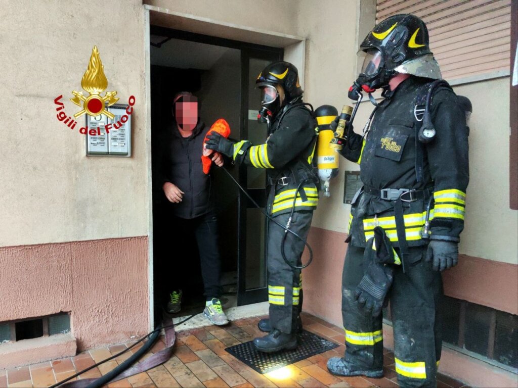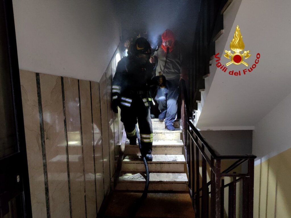 I vigili del fuoco accorsi dalla centrale con tre automezzi e 9 operatori, hanno iniziato le operazioni di spegnimento e di evacuazione delle persone rimaste bloccate nel vano scale, che avevano già respirato del fumo. Utilizzati dai vigili del fuoco i cappucci a sovrapressione, fatti indossare alle persone per attraversare le zone invase dal fumo. Delle 15 persone evacuate, 11 sono stati portati in ospedale per ulteriori accertamenti.