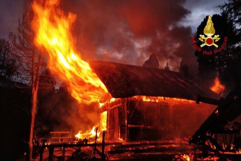 VENETO – A fuoco baita in legno, le fiamme lambiscono bombole di gpl