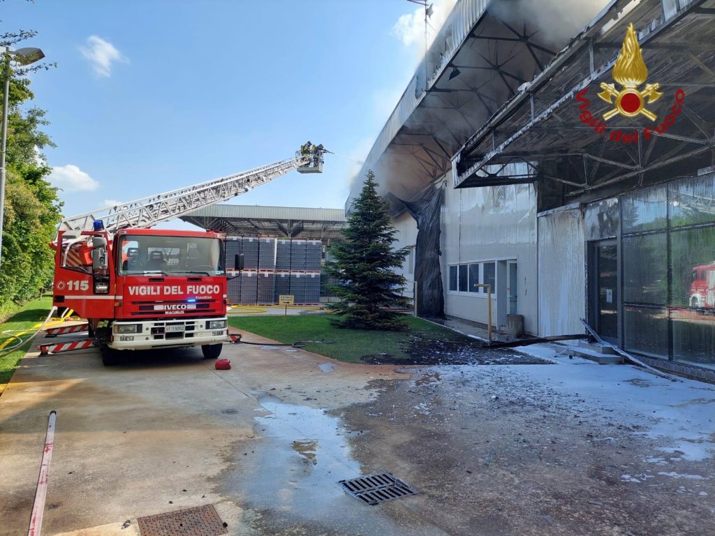 COLOGNA VENETA (VR), INCENDIO IN UNA FABBRICA CHE PRODUCE ARTICOLI IN VETRO