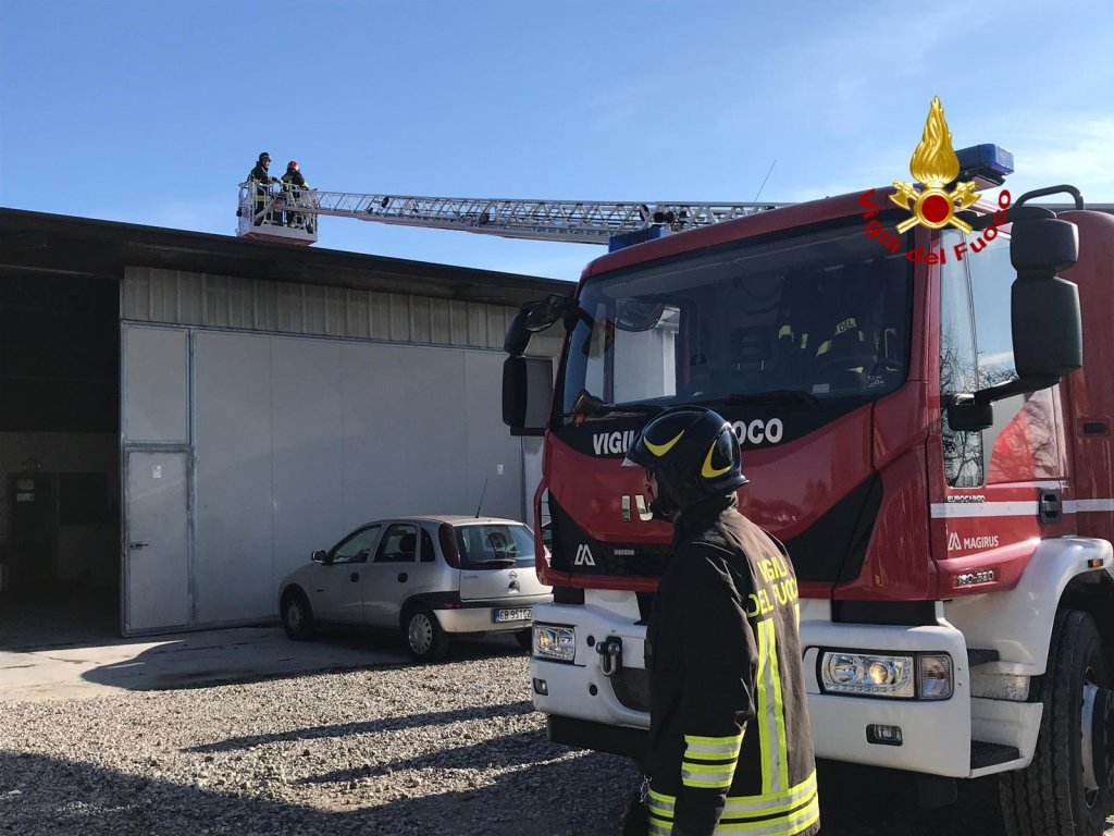 Alle 12, i vigili del fuoco sono intervenuti in via Tabina a San Donà per l’incendio tetto di un capannone di una ditta di cartongesso. Le squadre arrivate dal locale distaccamento e da Mestre con due autopompe due autobotti, un’autoscala e quattordici operatori sono riusciti a circoscrivere le fiamme evitando il coinvolgimento di tutta la superfice del tetto e dello stabilimento. Le cause dell’incendio sono al vaglio dei vigili del fuoco. Le operazioni di bonifica e messa in sicurezza dello stabilimento sono terminate dopo circa due ore.