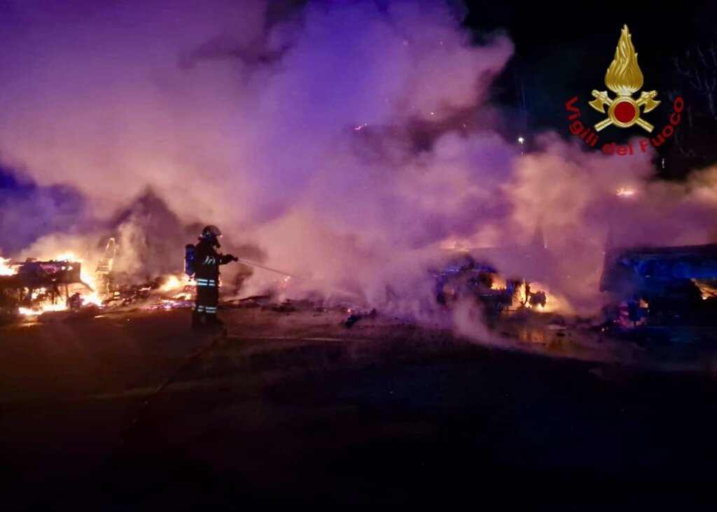 VENETO – A fuoco tre camper e due roulotte nella notte
