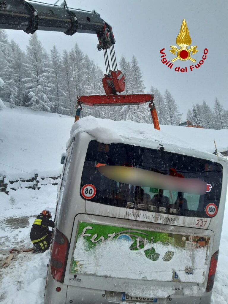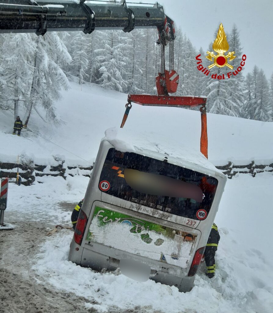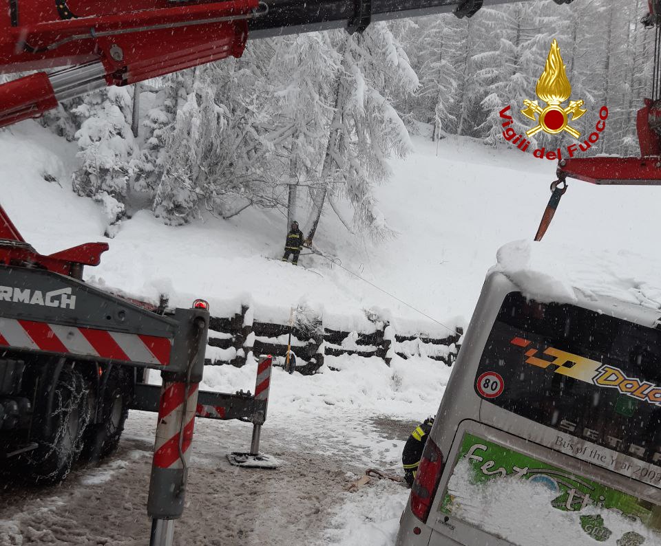 Sono quasi 100 gli interventi dei vigili del fuoco in provincia di Belluno per le abbondanti nevicate, che stanno interessando da questa mattina gran parte della provincia. Interventi principalmente per la rimozione di auto e mezzi pesanti rimasti bloccati dalla neve. Tra le operazioni di soccorso la rimozione di un bus parzialmente fuoristrada sul passo Giau a Colle Santa Lucia. Interventi