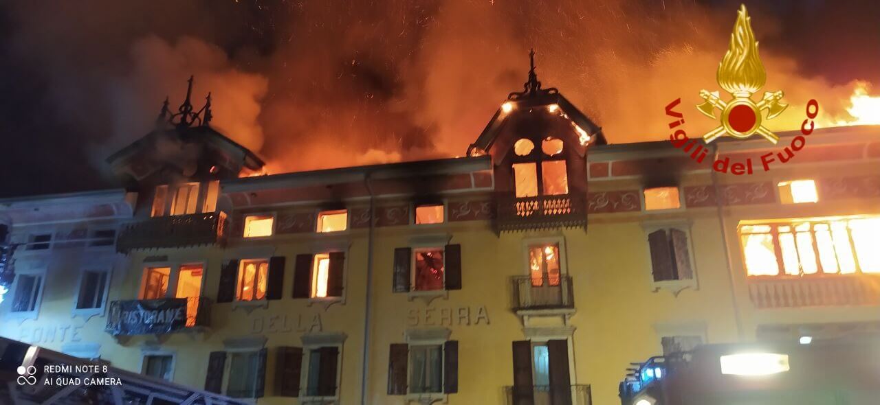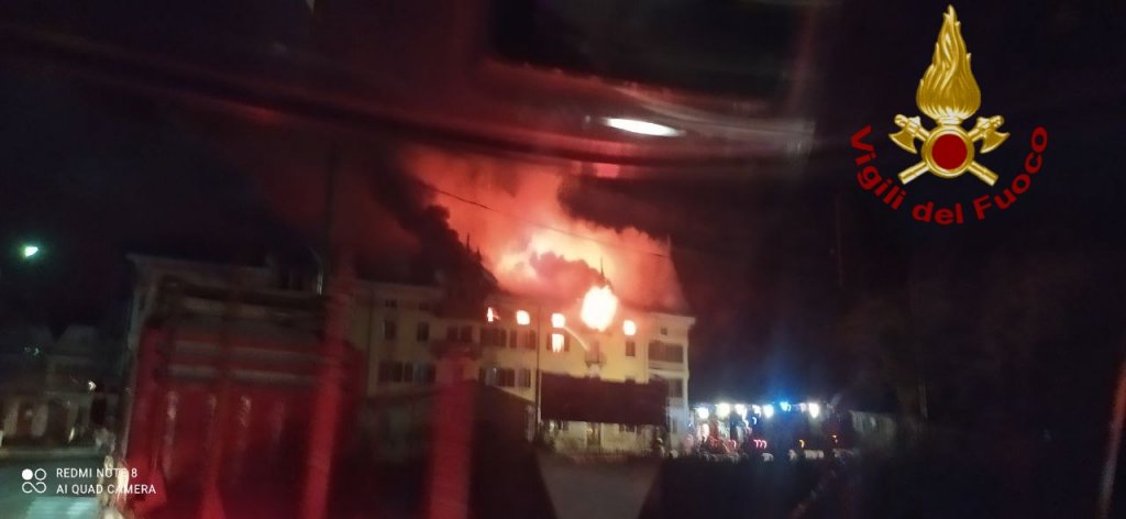VENETO – Albergo a fuoco nella notte, le foto dell’incendio