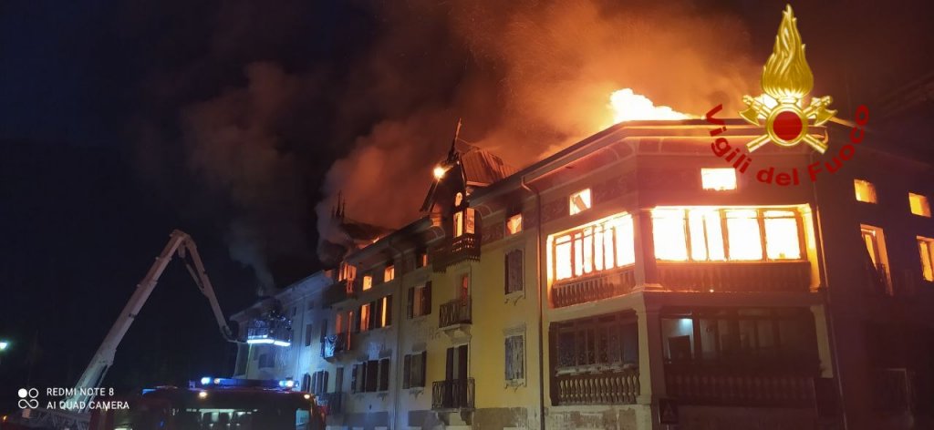 Dalle cinque di questa mattina, i vigili del fuoco sono impegnati a Lamon, a Ponte Sera, a causa dell’incendio in un albergo. Sul posto i vigili del fuoco di Feltre, di Bassano del Grappa e 21 operatori volontari del comando di Trento, presenti sul posto con tre autopompe, due autobotti e un’autoscala. Nonostante le immagini, spaventose per le dimensioni delle fiamme, pare non ci siano feriti.