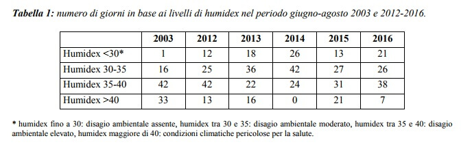 regionale, un indicatore del disagio climatico che tiene conto della temperatura e dell’umidità. L’estate 2016