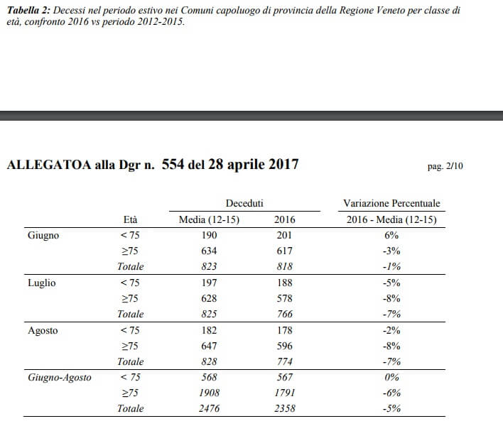 Come nelle estati precedenti, i Comuni capoluogo di provincia del Veneto hanno comunicato il numero