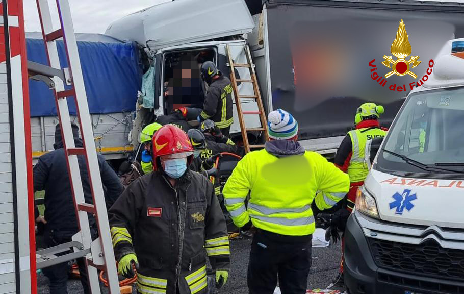 Alle 11:15 circa, i vigili del fuoco sono intervenuti lungo l’autostrada A13 tra gli svincoli di Monselice e Boara in direzione Rovigo per l’incendio di un’autovettura: illeso l’automobilista, in contemporanea nella corsia opposta in direzione Padova si è verificato un tamponamento tra mezzi pesanti con ferito. I pompieri arrivati da Este hanno spento con la schiuma l’incendio autovettura, mentre sul lato opposto le squadre arrivate da Rovigo, anche con un’autogrù, hanno messo in sicurezza i mezzi ed estratto utilizzando cesoie, divaricatori e martinetti idraulici un autista, rimasto incastrato nella cabina di guida. Il ferito è stato stabilizzato dai sanitari del SUEM e trasferito in elicottero in ospedale. Sul posto la polstrada e il personale ausiliario di autostrada. Durante le operazioni di soccorso il traffico è rimasto bloccato in entrambe le direzioni. Le operazioni di soccorso dei vigili del fuoco sono terminate dopo circa due ore.