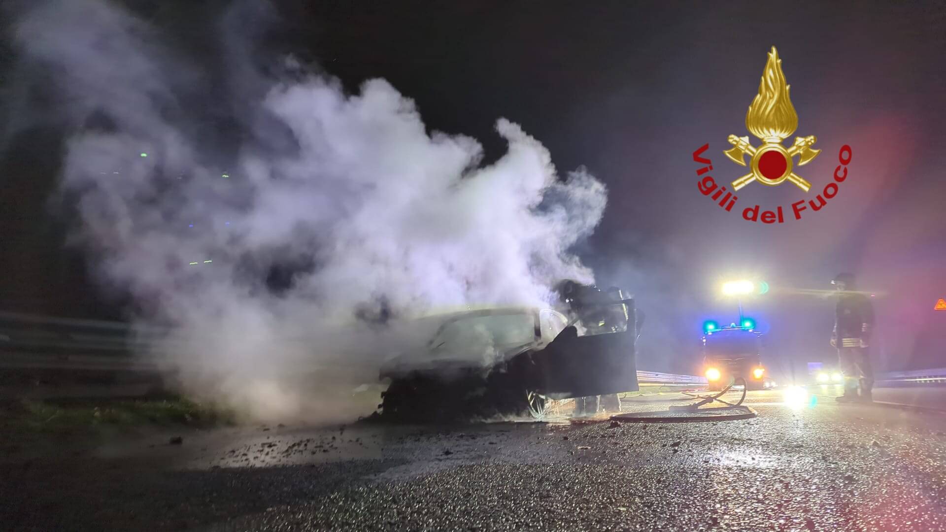Veneto – Auto a fuoco in autostrada: il conducente si salva in tempo