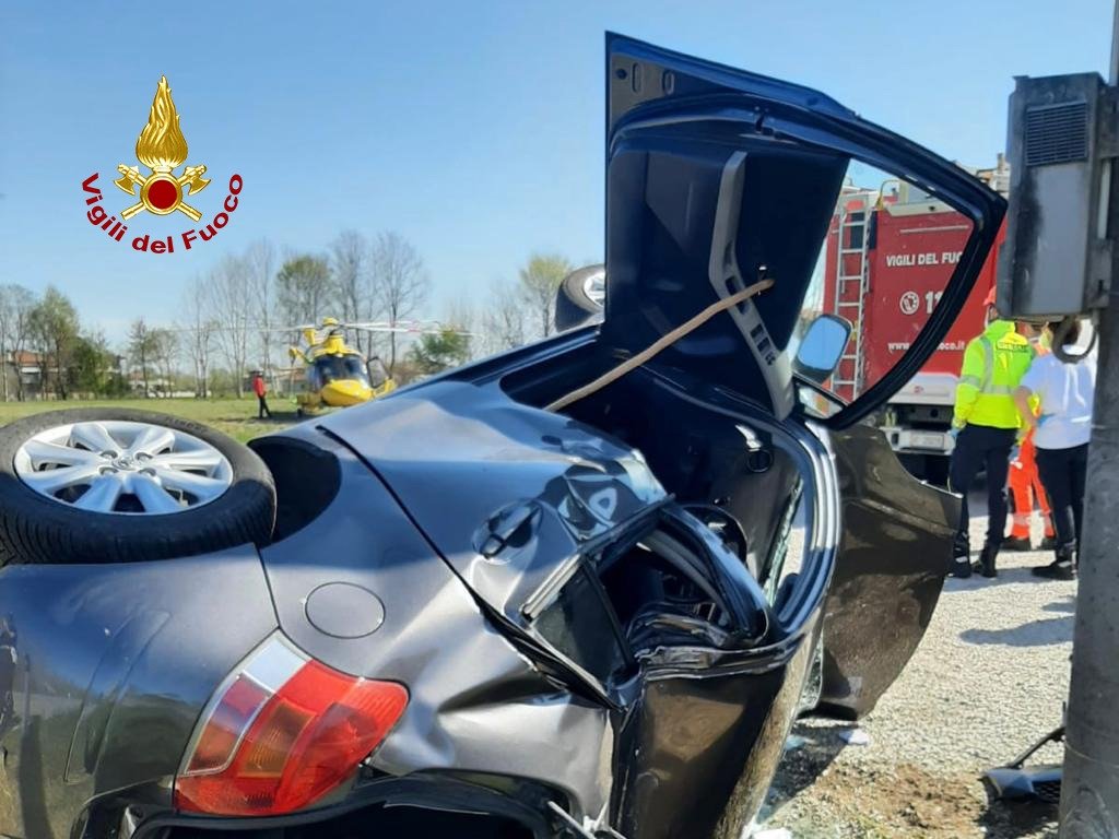 Alle ore 10:45, di lunedì, i vigili del fuoco sono intervenuti lungo la SP 58 in Via Guglielmo Marconi a Villa del Conte per un’auto finita rovesciata contro un palo di cemento, dopo la perdita di controllo del mezzo da parte della conducente, rimasta ferita. I pompieri accorsi da Cittadella, hanno messo in sicurezza il mezzo, ed utilizzando cesoie, divaricatori e martinetti idraulici estricato la donna, che è stata stabilizzata dal personale sanitario del SUEM per essere elitrasportata in ospedale. La polizia locale di Camposampiero ha deviato il traffico ed eseguito i rilievi del sinistro. Le operazioni di soccorso dei vigili del fuoco sono terminate dopo circa due ore.