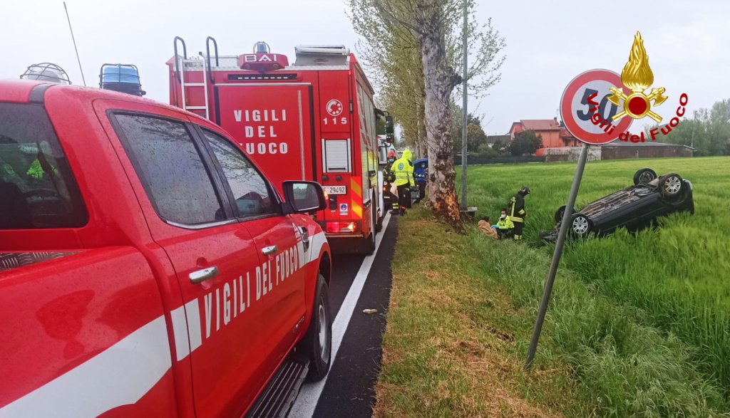 Alle 17:30, i vigili del fuoco sono intervenuti lungo la SR 88 in Viale Giovanni Amendola a Rovigo per un’auto finita contro un platano e poi rovesciata fuori strada: due feriti. I pompieri, della squadra di prima partenza, hanno messo in sicurezza la Fiat Idea e prestato i primi soccorsi alla coppia fino all’arrivo del personale del SUEM. I due feriti sono stati stabilizzati dai sanitari e trasferiti con due ambulanze in ospedale per ulteriori accertamenti. Sul posto la polizia locale per la deviazione del traffico e i rilievi del sinistro. Le operazioni di soccorso dei vigili del fuoco sono terminate dopo circa un’ora.