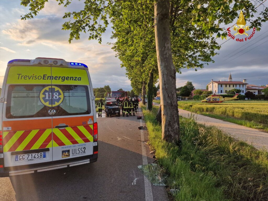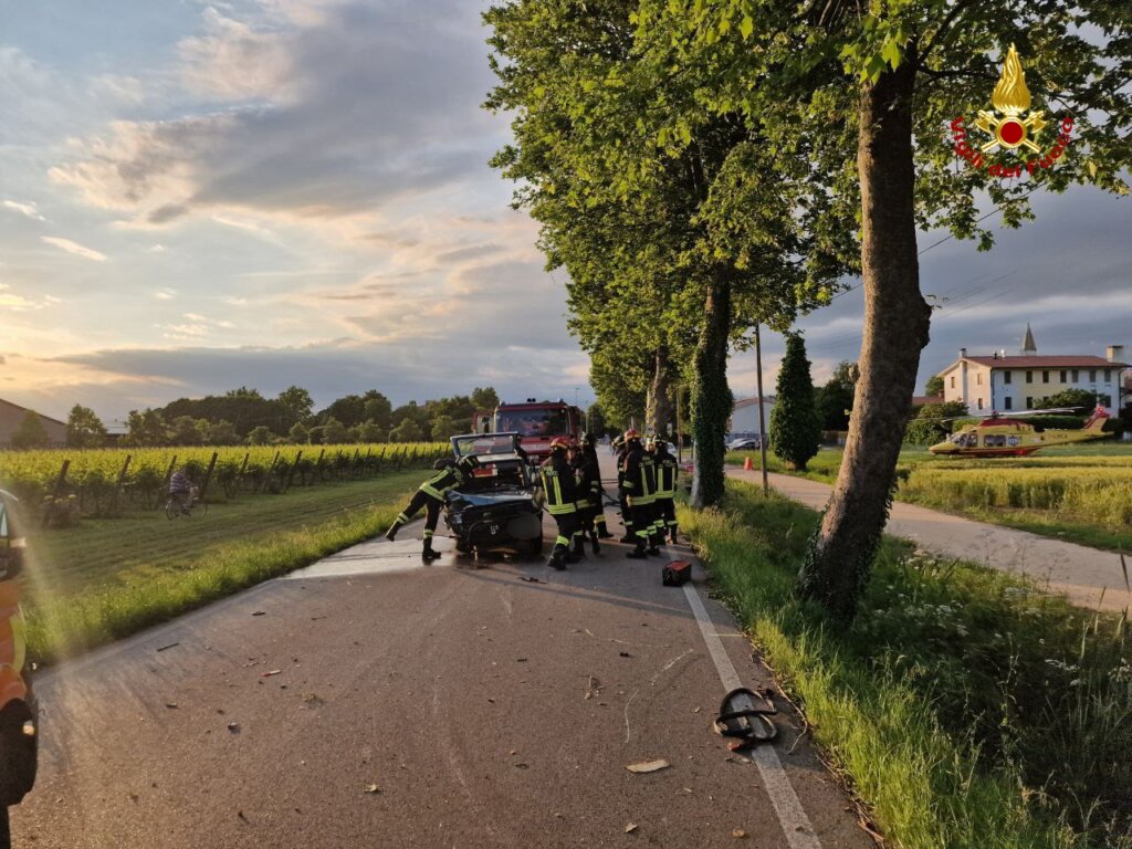 Poco prima delle 20:00 di domenica sera, i vigili del fuoco sono intervenuti in Via Naibo nel comune di Mansuè (TV) per un’auto finita contro un platano: una persona ferita.