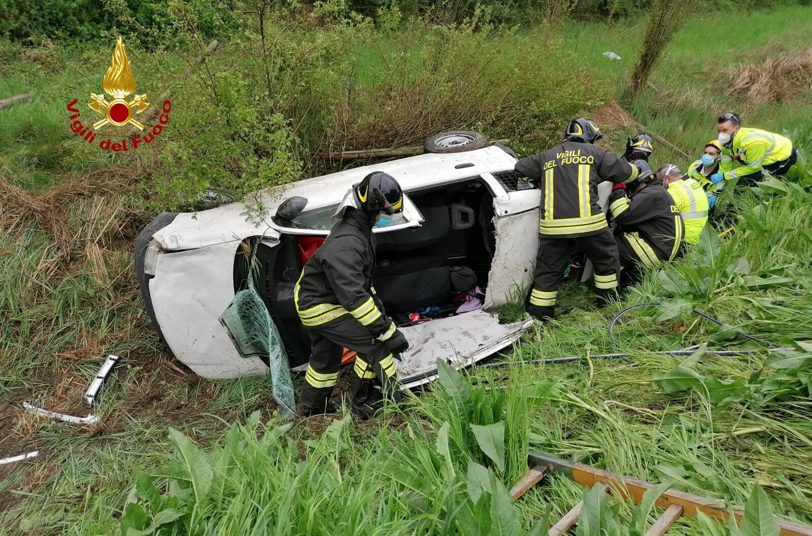 VENETO – Auto fuori strada: i pompieri tagliano la tettoia per liberare autista ferito