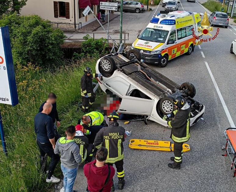 VENETO – Auto rovesciata: uomo e bambino feriti