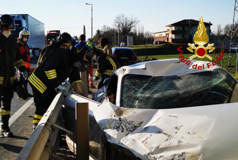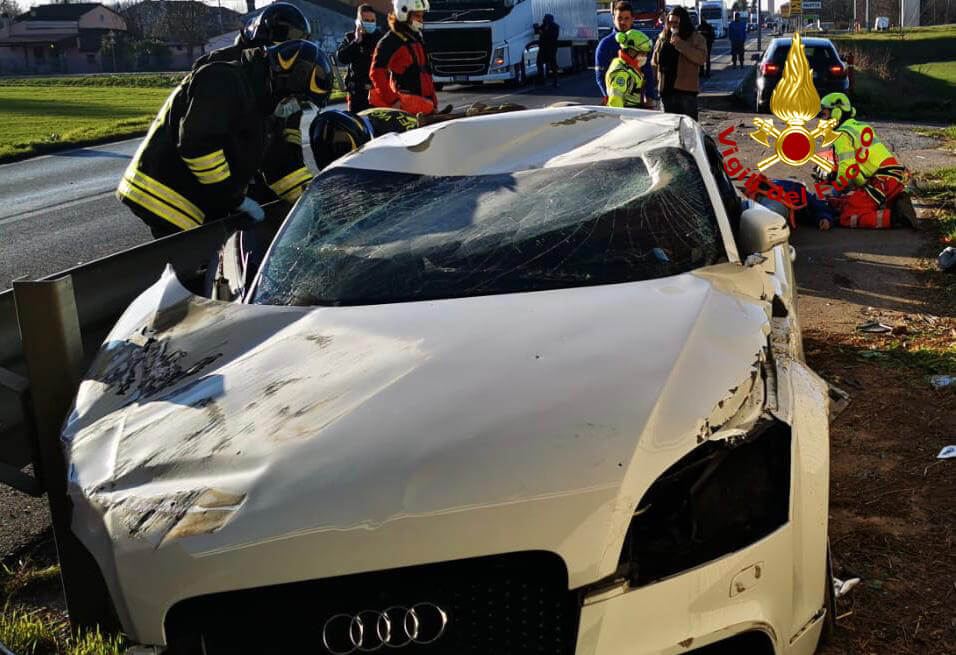 Incidente rocambolesco e autista e passeggero miracolati nel primo pomeriggio nel Padovano. Alle 14:45, i vigili del fuoco sono intervenuti in via Roma nel comune di Saletto di Borgo Veneto per un’auto finita contro la cuspide di un guardrail rimanendo infilzata: ferito il passeggero, illeso il conducente. I pompieri arrivati da Este, hanno messo in sicurezza l’auto e utilizzando cesoie divaricatori e attrezzature varie hanno smontato parte del guardrail riuscendo a liberare il passeggero che è stato preso in cura dal personale sanitario del SUEM. Il ferito è stato stabilizzato e trasferito in ospedale. Sul posto i carabinieri per deviare il traffico ed eseguire i rilevi del sinistro. Le operazioni di soccorso dei vigili del fuoco sono terminate dopo circa un’ora e mezza.