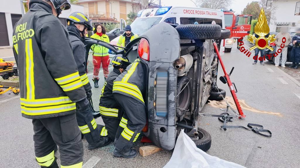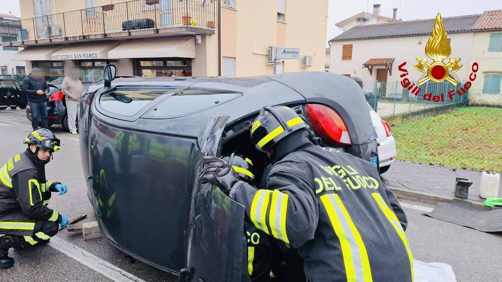 Veneto – Auto si ribalta: una persona incastrata, intervengono i soccorsi