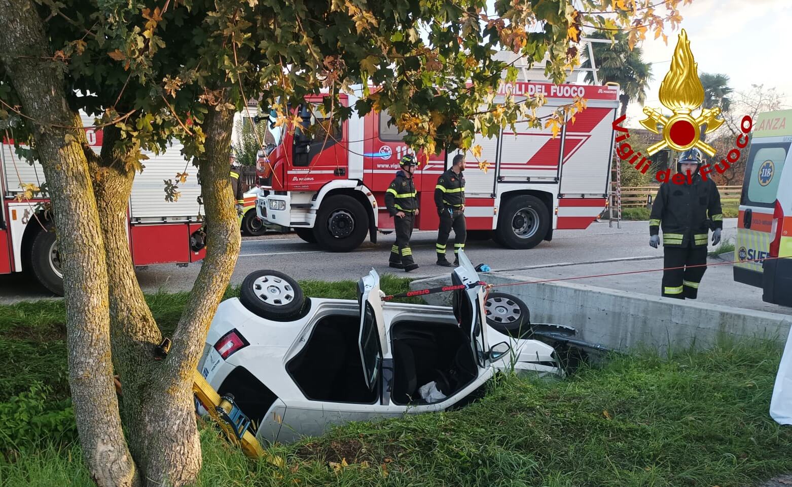 Alle 8:00, di sabato, i vigili del fuoco sono intervenuti in Via Castellana a Scorze per un’autovettura finita rovesciata in un canale di scolo contro il muro in cemento di un piccolo ponticello di passaggio pedonale: deceduto l’autista. I vigili del fuoco intervenuti da Mestre e con i volontari di Mirano, hanno messo in sicurezza il mezzo, ed estratto il conducente. Purtroppo nonostante i tentativi di rianimazione il medico del Suem ha dovuto dichiarare la morte dell’uomo. La polizia locale ha deviato il traffico ed eseguito i rilievi per determinare le cause del sinistro. Ancora in corso le operazioni di recupero dell’auto da parte dei vigili del fuoco.