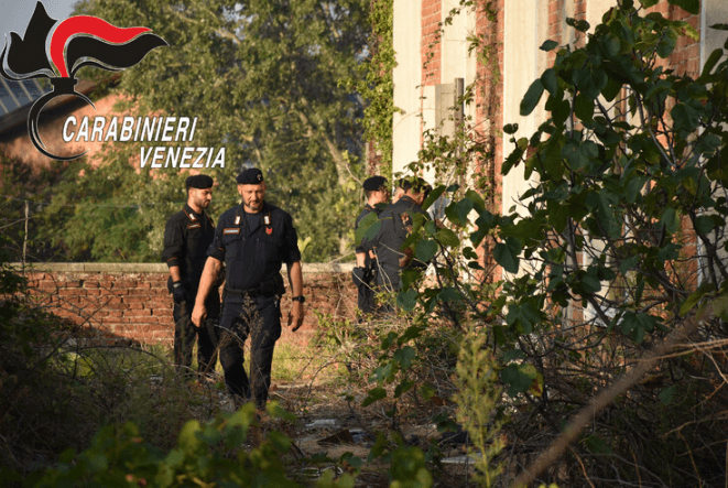 Blitz dei Carabinieri di Venezia nella zona dell’Arsenale di Venezia, con l’ispezione di un enorme edificio abbandonato ubicato a ridosso dell’imbarcadero “Bacini”.