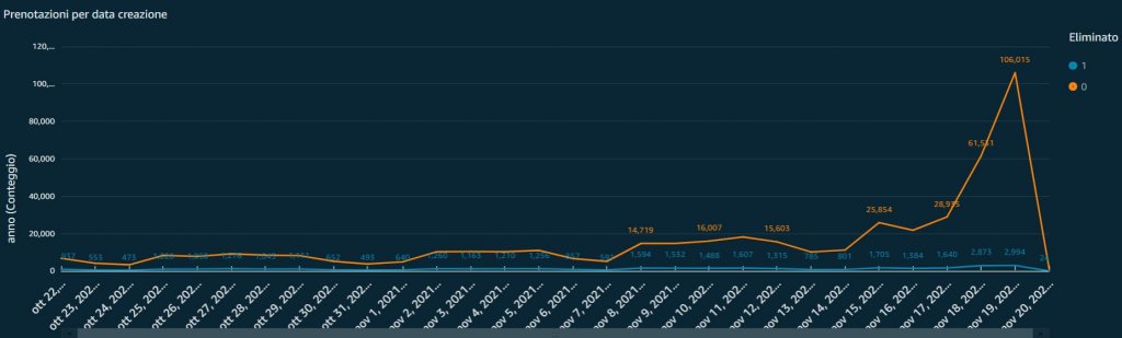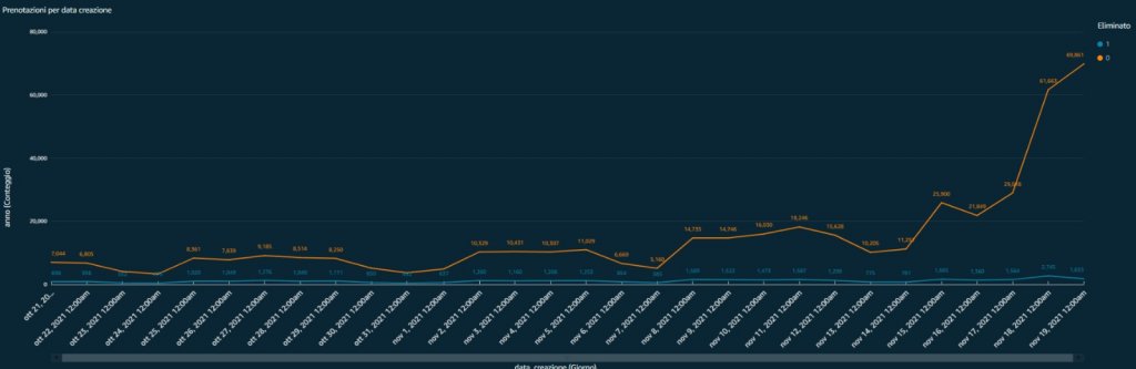 La Regione Veneto ha reso noti stamattina i dati relativi alle prenotazioni per la terza dose di vaccino contro il Covid 19. L’apertura agli over-40 ha fatto impennare le prenotazioni, diventate dieci volte tanto rispetto a prima, con oltre 100 mila prenotati solo ieri. Di seguito, le grafiche fornite dalla Regione a riguardo.