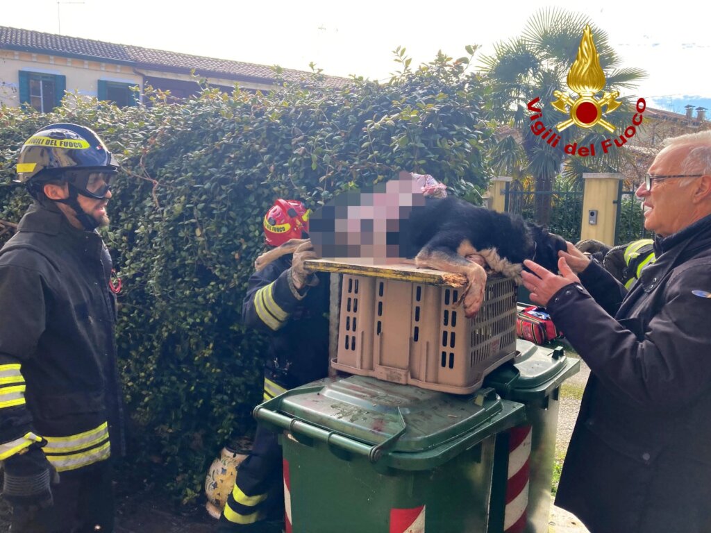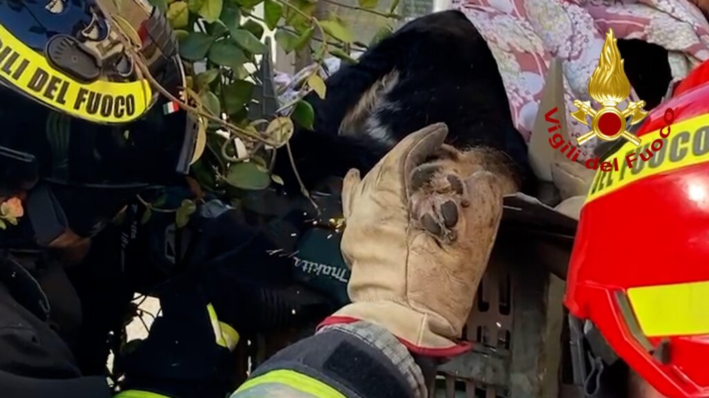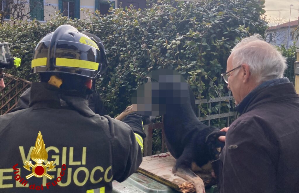 La squadra, giunta tempestivamente dalla centrale, ha soccorso “Bruna”, facendola adagiare su un tavolato appositamente spessorato per alleviarne il peso. Successivamente, utilizzando una moletta, i vigili del fuoco hanno tagliato la cancellata, liberando la cagnolina. Sul posto erano presenti anche un medico veterinario e il proprietario dell’animale, che si sono presi cura di lei immediatamente dopo il salvataggio.