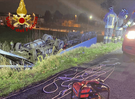 Ieri alle 17.30 i vigili del fuoco hanno operato al km 114, dell’autostrada A13, dopo lo svincolo del casello di Padova zona industriale per un camion finito rovesciato fuoristrada dopo la perdita di controllo dell’autista, rimasto ferito.