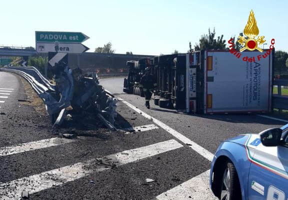 VENETO – Camion si ribalta in A4: chiuso lo svincolo Padova Est